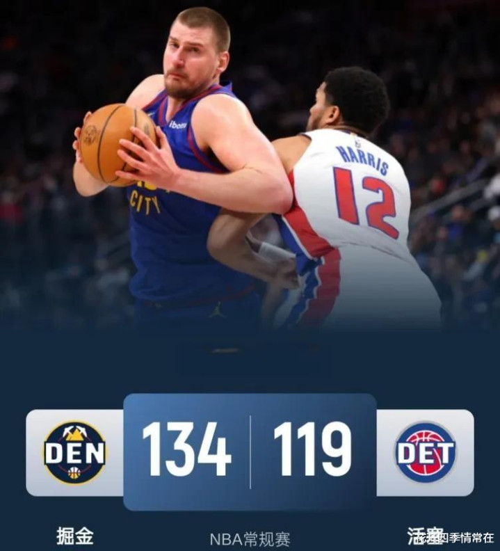 3. 丹佛掘金 134:119 底特律活塞: 掘金队以一场大胜终结了活塞队的八连胜。毫无疑问,约基奇 (23分17篮板15助攻) 再次成为全场焦点,他的三双数据展现了其无可比拟的统治力。 掘金队流畅的进攻配合和高效的得分能力,让活塞队始终处于被动状态。这场比赛也凸显了掘金队在争夺西部前列的强大实力。